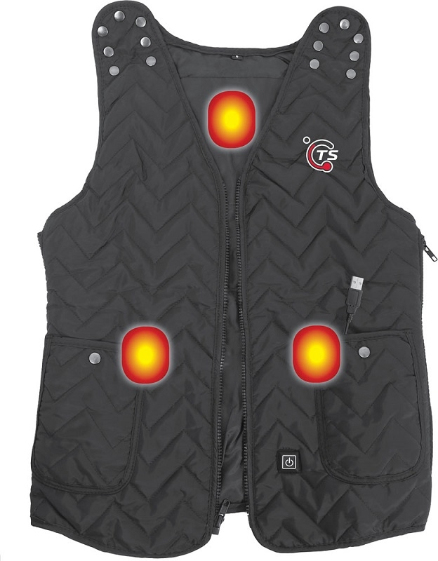 Varmevesten leveres med 1 stk powerbank på 10 000mAh (Polymer Li-ion batteri) Ladekabel USB-C og brukermanual.