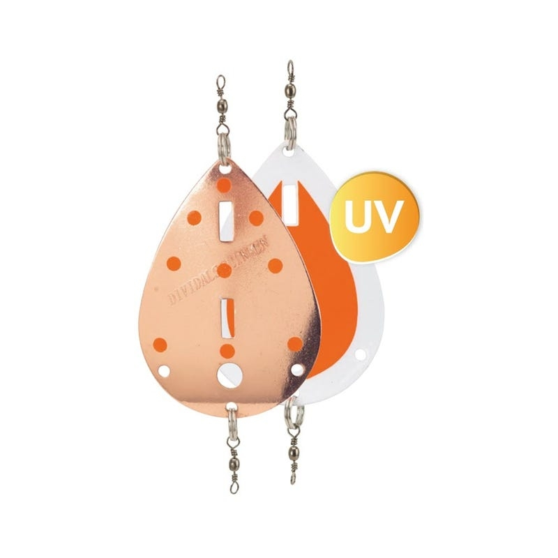 Dividalsblinken 70mm er utstyrt med hull for montering av ekstra attraktorer. Der kan du sette f. eks en treblekrok om du opplever at røya angriper blinken. En liten garntråd med luktestoff eller et spinnerblad eller en annen attraktor.