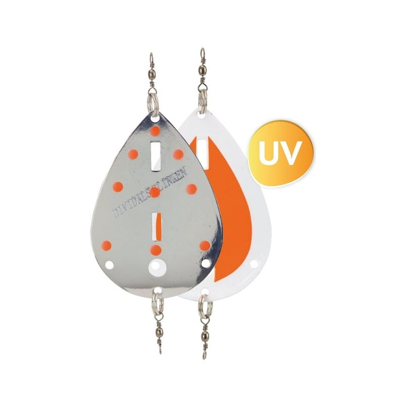 Dividalsblinken 70mm er utstyrt med hull for montering av ekstra attraktorer. Der kan du sette f. eks en treblekrok om du opplever at røya angriper blinken. En liten garntråd med luktestoff eller et spinnerblad eller en annen attraktor.
