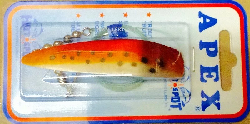 Apex fra Hot-Spot er blandt mange trollingfiskeres favoritter. Skjeens lokkende og slingrende gange har vekket mang en ørret og laks til hugg.