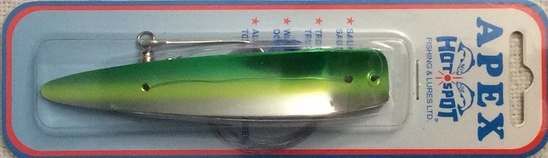 Apex fra Hot-Spot er blandt mange trollingfiskeres favoritter. Skjeens lokkende og slingrende gange har vekket mang en ørret og laks til hugg.