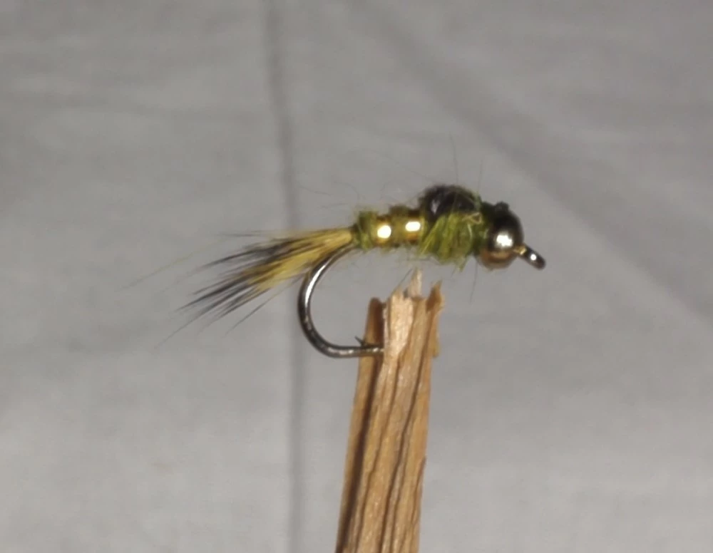 Kulehodenymfe Oliven #12 er en fortynget nymfe for fiske hvor du ønsker å komme fort ned i vannlaget.