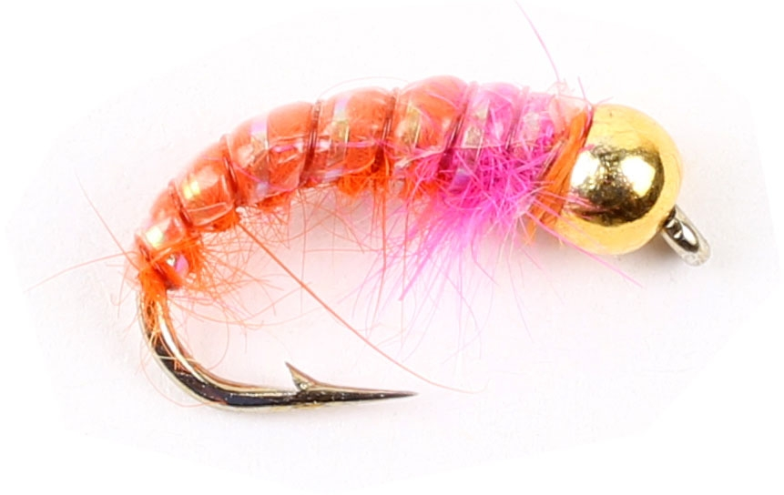 Flott nymfe med goldhead hode. Bundet på krok med innoverbøyd øye. Sikrer at kroken vil peke oppover i vannet.