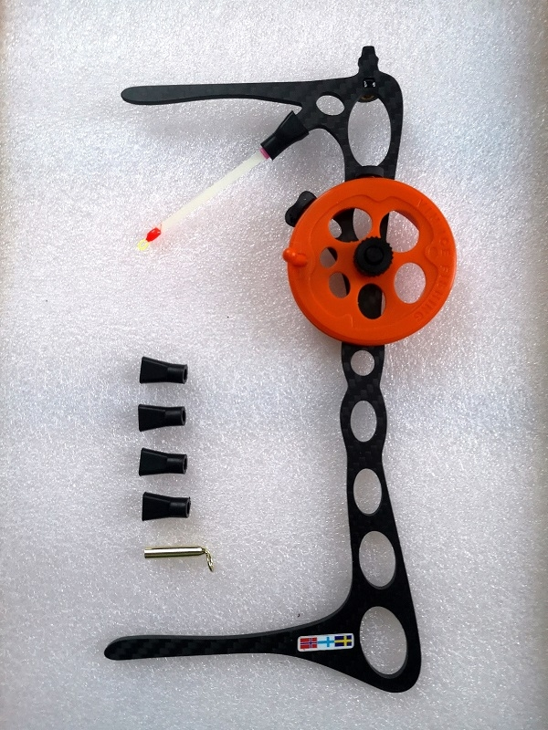 VIM Karbon superlett og sterk varpestikke. Produsert i 3mm karbon. Medfølger 1 toppøye og 4 fester til disse. Justerbar nappindikator for mormyskafiske.
